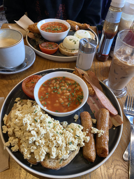 grateful because it started raining only at the very end of our trip, so this is the moment we decided to drink tea and then eat fish and chips yummy