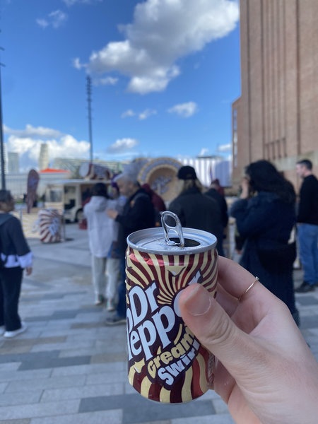 Crossed the Albert Bridge and took a walk in Battersea. Discovered the Battersea Power Station I have never heard of before, despite it being the iconic Pink Floyd’s Animals album cover?? (as if by chance, saw a rainbow on the ground just next to it #DarkSideOfTheMoon…). PS: this step of the trip is sponsored by Dr. Pepper who offered everyone (very mid) cream limited edition soda cans in front of the building – magnificent historical building which has now become a mall btw… :/